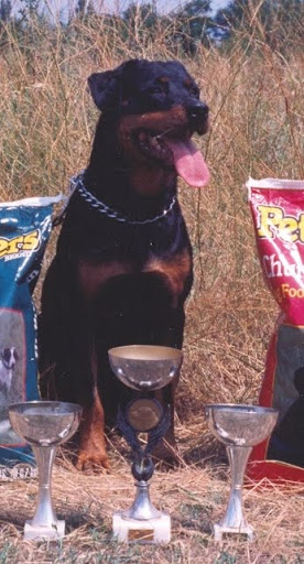 Mit tehetünk? Más mit, tesz nem tudom. Azt tudom, hogy mi mit tettünk. Tenyésztési cél volt, a jó, egészséges, szép rottweiler. Rendelkezett azokkal a képességekkel, ami jó munkakutyává tette. Milyen az ilyen kutya? Magabiztos, bátor, rettenhetetlen, okos, születetten jó ösztönös képességekkel rendelkezik, mert ez egyszerűbbé, élvezetesebbé teszi a vele való munkát. Határozott, vezető típusú, erős, nagy. Jó társ, jó barát tud lenni, kísérő kutya, megbízható testőr.