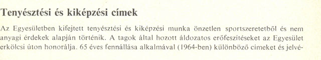 Civil szervezet, civil hobbiként határozta meg a kutyatenyésztést, miközben az FCI alapvető szabályait be kellett tartania. 1960-as években, a kezdeteknél, de sokáig még, egészen a 80-as évek közepéig, az állami engedéllyel megjelenő nyomtatott sajtó, rádió, TV volt az, ahonnan tájékozódni lehetett, nem volt világútlevél, internet sem.
